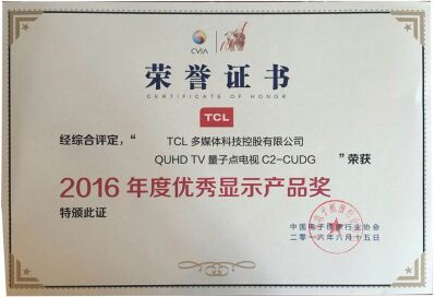其实这已不是TCL量子点电视及其量子点技术第一次获得权威认可。从2014年年底推出中国第一台量子点电视开始,到2015年率先融合曲面和量子点技术,推出量子点曲面电视H8800,再到今年全球发布高端品类QUHD量子点电视,TCL三年来在量子点显示领域不断取得突破,也同样获得了行业权威和消费者的认可。会上TCL多媒体中国区副总经理胡学军介绍:“5月底,TCL在福建启动了以“科技点亮视界”为主题的全国巡展,虽然首站只有短短两天时间,但现场则吸引了数万名消费者前来参观QUHD量子点电视;此外,近段时间,包括中科院院士欧阳钟灿、量子点领域最权威的浙江大学彭笑刚教授等在内的技术专家都对量子点显示及量子点电视给予了极大的肯定。基于消费者的背书和专家的背书,TCL对量子点未来发展充满着信心。“