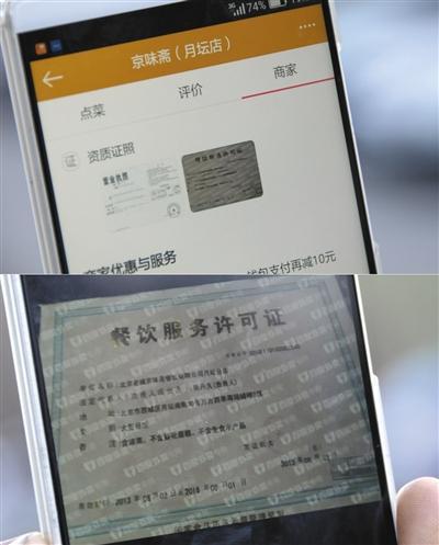 模糊证件蒙蔽消费者。在平台上,北京、上海、广州一些已经公示经营证照和商户实景的餐户,却只能看到分辨率很低的小照片,无法点击放大。