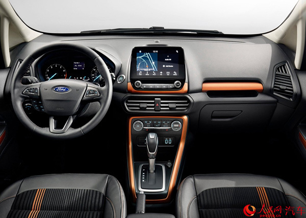 在内饰设计上,新车的变化较大,不但重新设计了中控台,座椅等部分都与此前也不同。中控台上加入了大尺寸液晶屏,同时采用了鲜艳的橙色饰条,看起来很有活力。新车将搭载福特最新的SYNC 3车载系统,并在高配车型上使用B&O音响。