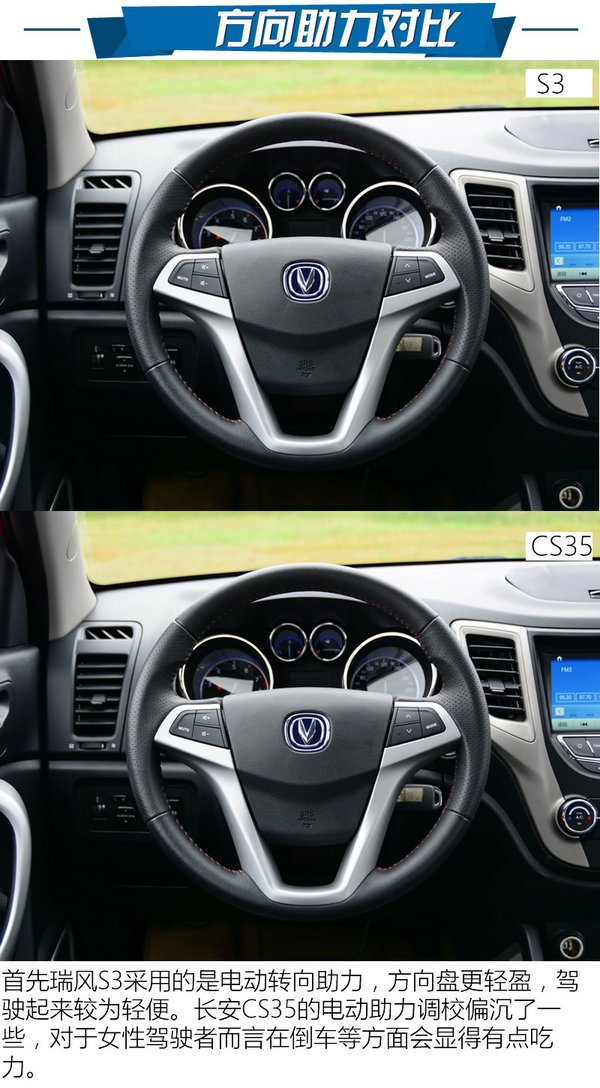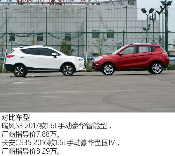 总结:在本次动力驾控比拼上,瑞风S3以及长安CS35在动力输出上差别不大,但S3的6档手动变速器相比CS35的5档手动变速器能带来更出色的燃油经济性。另外S3的悬架调校更舒适,同时开起来也非常轻便。CS35的悬架调校则稍微偏向运动,机械转向助力也稍微沉重,但在乘坐舒适性上其也因此不如S3出色。然而在这个级别的SUV中,家庭用户还是占据绝大部分,他们更看重的是车辆的舒适性,或许,这也是瑞风S3能比长安CS35更畅销的原因之一吧。
