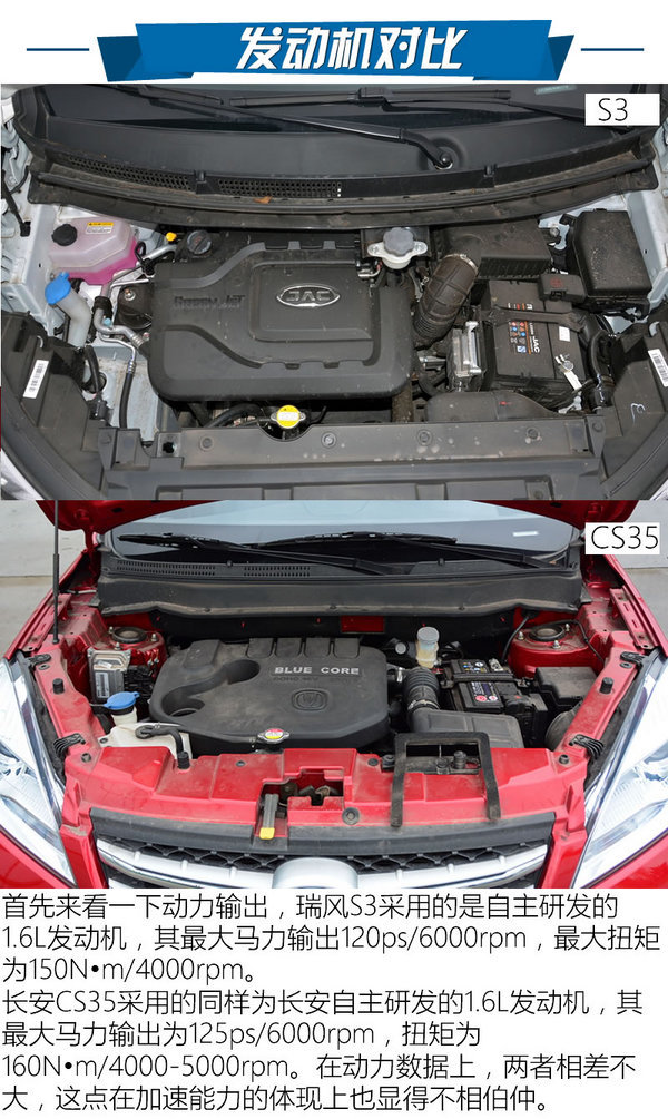 在小型SUV中,卖的最火的莫过于瑞风S3了,其犹如一匹黑马,杀破重重重围,成功登顶。然而,它的对手们也不甘落后,长安CS35也拥有着较高的人气。当这两者狭路相逢,我们便能揭开孰优孰劣了。在上一篇泊车系统对比中,瑞风S3完胜长安CS35,而本次在动力驾控上的对比,它们各自又有何表现?