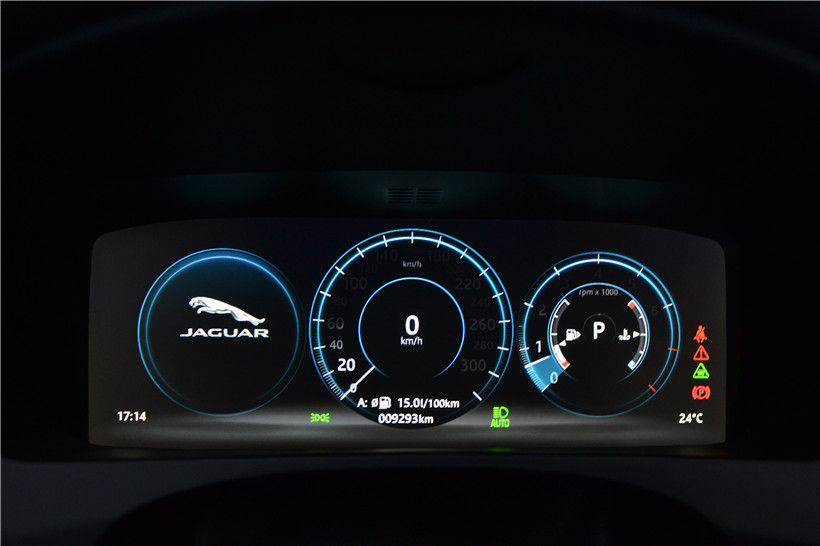 比如F-Pace的全液晶仪表盘,低一阶的2.0T R Sport版本倒是标配,而这辆标价84.8万元的S高性能版却成了选装。12.3英寸的仪表盘显示效果细腻,只是捷豹未能充分地利用显示面积,不像奥迪的液晶仪表盘那么信息全面。比如在通常状态下,屏幕左侧仅能够显示捷豹标志、时间,信息量不够大。而在全屏地图状态下,车速转速等信息则又被隐藏,如果没有HUD配合,则显稍有不便。这样说未免有些吹毛求疵,无论如何全液晶仪表盘总比传统仪表来的更有吸引力。