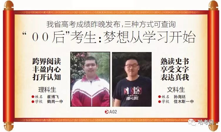 2018年高考成绩已经公布,各省的状元也相继亮相。黑龙江省今年的状元分别是:理科状元: 崔博飞,鹤岗一中,701分; 文科状元:孙海廷,佳木斯一中,649分。他们两位为大家分享学习心得。