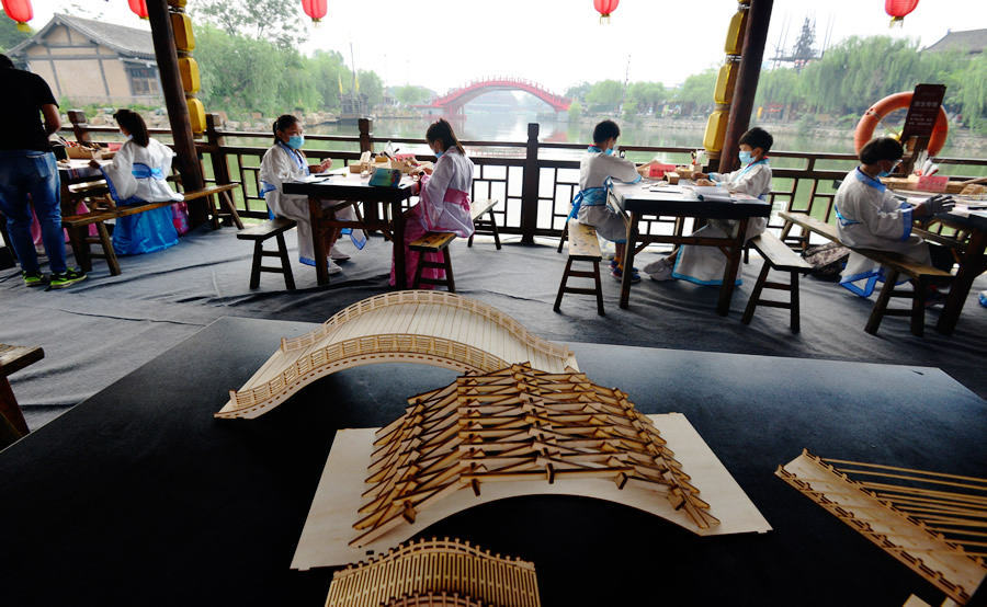会前,与会嘉宾和领导现场观摩了开封清明上河园、翰园碑林、铁塔公园等景区打造的《中国桥的奥秘》、《神奇的泥咕咕》、《笔墨纸砚》等15个研学精品课程,并饶有兴趣地与现场参加课程的孩子们进行了互动。专业的课程体系,寓教于乐、寓学于游的学习方式,给众人留下了深刻印象。